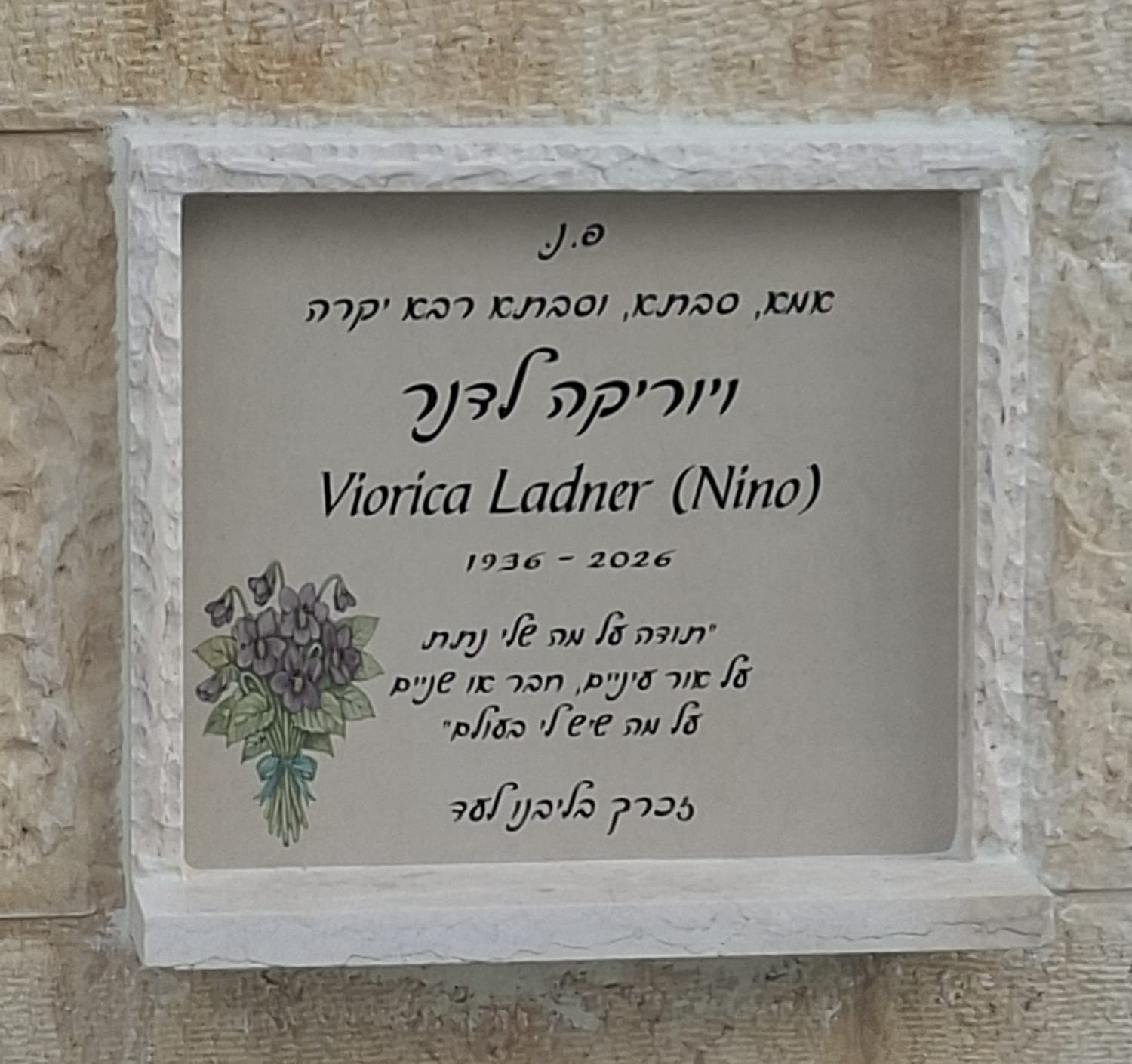 כיתוב בתנור לנצחשיש פורצלן כולל מדף חברוני וחריטה בצבע שחור